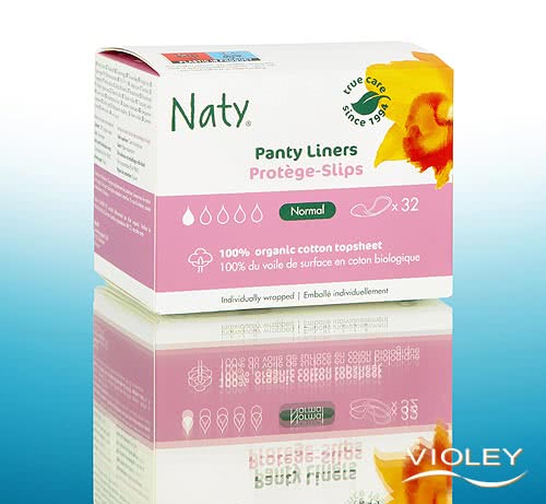 Naty Panty Liners Normal. Naty panty liners are made from 100% pure organic cotton in direct contact with the skin. They are made from plant-based and compostable materials. Thin, soft and flexible, they offer a comfortable fit. They are also free from perfume and lotions. Each panty liner is individually wrapped in compostable material.