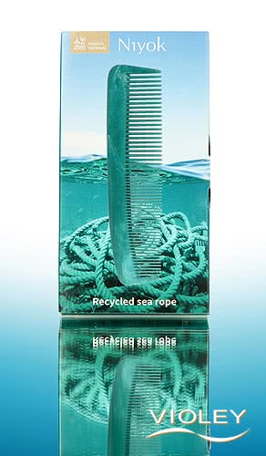 Niyok Pocket Comb recycled. Whether you're on the go, travelling or for a quick touch-up in between - the pocket comb made from 99% recycled marine rope is your companion for every situation. The compact comb fits in almost any bag, is light as a feather and yet robust. The finely crafted, rounded teeth glide gently through the hair and are ideal for styling, smoothing or shaping. No matter whether you have short, medium-length or fine hair. Thanks to its pleasant feel, the comb sits securely in the hand and turns daily hair care into a natural ritual.