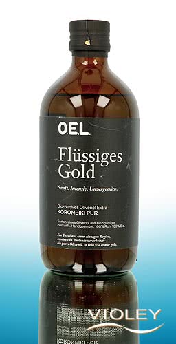 OEL Berlin Organic Extra Virgin Olive Oil Liquid Gold. Single-variety olive oil made from 100% Koroneiki olives. Koroneiki Pure bears the profile of its country: bold and intense, with a fresh green note and a peachy finish. Nuanced and unique, it does not blend with food, but elevates it to a new level.
