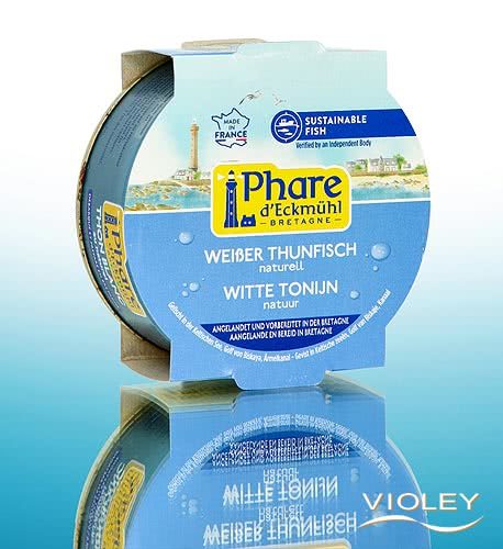 Phare d'Eckmühl Albacore Tuna Natural. Albacore tuna (Thunnus alalunga) is also known as longfin tuna. In this tin, it is only preserved in water and salt. It is a versatile addition to creative salads, stews, sauces and delicious fish dishes.
