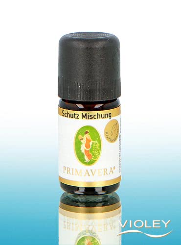 Primavera Kraftkonzentrat Protection Essential Oil Mixture. Natural cosmetics for aroma care of the skin. Concentrate with the essential oils of oregano, manuka, thyme thymol, ravintsara, etc. Use the concentrate mixed with care oil or shea butter for massages or as a bath additive.