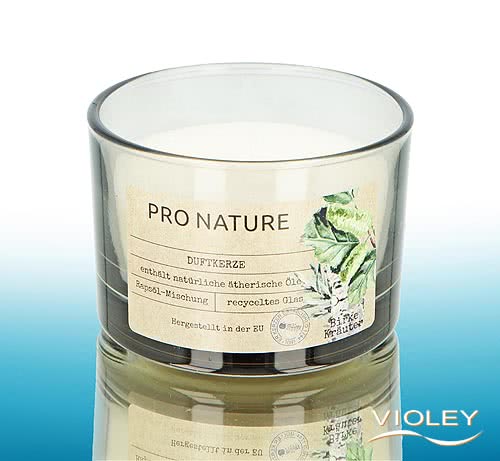 Pro Nature Scented Candle with Rapeseed Oil, Birch Herbs. The beautifully shaped glass and the cotton wick give this scented candle a restrained and elegant look. The filling of natural waxes and rapeseed oil contains natural essential oils. These provide the pleasant scent of birch and herbs when burning.