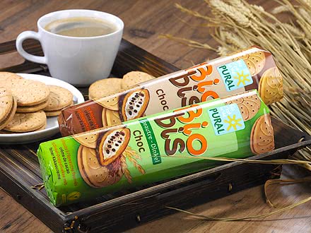 Instead of fish one can also mix chocolate in the cookie dough or cover the biscuits with chocolate. Or one may put a layer of chocolate between the biscuits like Pural does with the Biobis Choc Organic Biscuits. The tasty biscuits with a layer of fine cocoa cream filling leave nothing to be desired. The thick biscuits also taste great with orange, vanilla or fruit cream filling. The dream team of organic double biscuits with fruit or cocoa cream filling is also baked as a variant with spelt flour. 15 mouth-watering biscuits in the 300-g package turn occasional nibblers into biscuit enthusiasts.