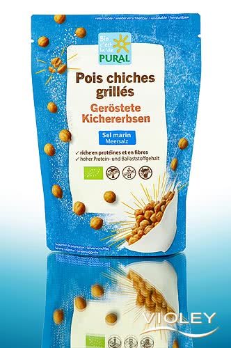 Pural Organic Roasted Chickpeas Sea Salt. The roasted chickpeas with fine sea salt combine crunchy enjoyment with natural purity. Whether as a tasty snack for an evening in, as a protein snack in the office or as a sophisticated addition to an aperitif, roasted chickpeas are a wonderful snack for any occasion. Their fine sea salt flavour perfectly rounds off the full-bodied taste of the roasted pulses - crunchy, hearty and all-natural.
