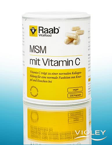 Raab MSM with Vitamin C in the large pack of 200 capsules. Dietary supplement with vitamin C from acerola cherries. Raab MSM combines organically bound sulphur with natural vitamin C from acerola cherries. MSM is the abbreviation for an organic sulphur compound.