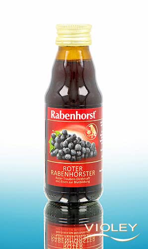 Rabenhorst Juice Roter Rabenhorster is red grape direct juice with iron. In the small 125 ml bottle. Enjoy the great taste of full-bodied red grapes.