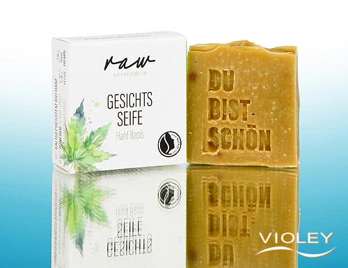 raw Natural Cosmetics Facial Soap Hemp. Gentle, moisturising facial cleanser with cold-pressed organic hemp oil, organic olive oil, Greek clay and a fresh hint of lemongrass and orange. The fine foam of the moisturising soap is also suitable for sensitive skin.