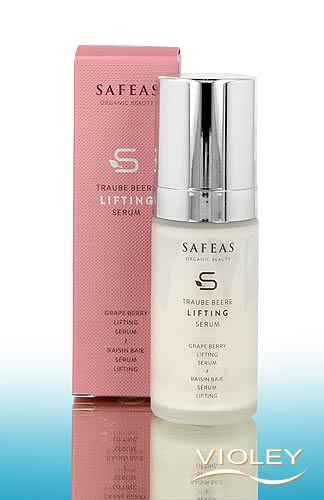 Safeas Grape Berry Lifting Serum. The formula of grape polyphenols, an active ingredient complex of blueberries, ginkgo, ginger, coffee, nettle and Brazil nut supports cell activity and minimises lines and wrinkles. Elixir made from aloe vera juice, grape juice, blueberry juice and hyaluronic acid provides intensive moisture and has a firming effect. The skin appears smoother, firmer and tighter.