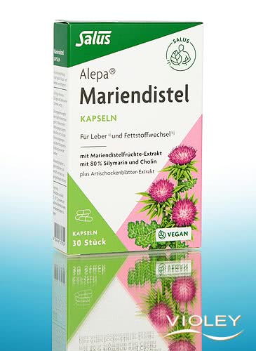 Salus Alepa Milk Thistle. 30 capsules. Food supplement with milk thistle fruit extract with 80% silymarin and choline plus artichoke leaf extract. The liver is our body's metabolic centre, glycogen store and also a vital detoxification and digestive organ. In addition to a conscious lifestyle and a balanced diet, choline or milk thistle fruit, for example, can contribute to the maintenance of normal liver function.