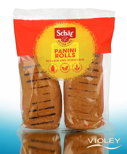 Schär Panini Rolls in a pack of 2. The Panini Rolls are savoury delicacies for individual topping and enjoyment. The gluten free Panini Rolls taste twice as good when ypu crisp the up. A real treat for breakfast, as a snack or for dinner!
