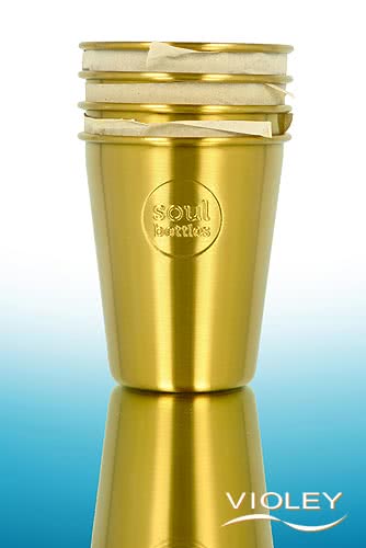 Soulbottles Steel Cup Gold 0.3 Litre. With the completely plastic-free and feather-light soulcup made of stainless steel, you no longer need a disposable cup. 4 pieces with a filling capacity of 300 ml.