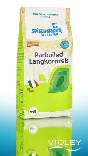 Spielberger Organic Parboiled Rice. Long grain rice is steamed under pressure. The silver skin is then polished off. The pre-treatment makes it quick and easy to cook.