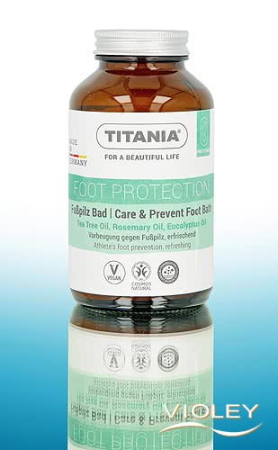 Titania Foot Protection Care & Prevent Foot Bath. The foot bath salt contains valuable essential oils from tea tree, rosemary, peppermint and eucalyptus. It pampers and refreshes stressed feet and is ideal for soothing, clarifying foot care in everyday life.