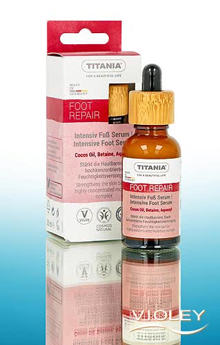 Titania Foot Repair Intensive Foot Serum. The rich serum supports the natural skin barrier and leaves the skin feeling nourished and supple. The highly concentrated active ingredient complex with aquaxyl, glycerine and betaine improves moisturisation and makes the skin noticeably and long-lastingly soft.