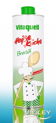 Vitaquell Frying Oil in a 1 l can for bulk consumers. Vitaquell Frying Oil is particularly suited for frying because of the high content of oleic acid. Excellent for easy braising, roasting, grilling, frying and for fondue. It is consciously tasteless to guarantee the full development of flavor during the preparation of dishes.