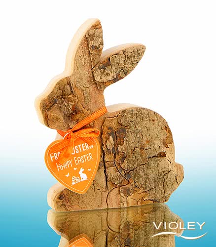 Waldfabrik Decoration Bark Rabbit lying 12.5 cm. This Easter bunny is made of hardwood with bark (natural). The hand-sawn bark bunnies are a real eye-catcher and make a wonderful Easter decoration or small souvenir for the festival. They are also provided with a festive bow and a loving Easter greeting. Size approx. 12,5 cm x 9 cm.