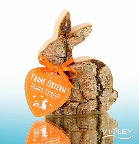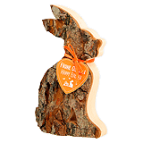 Waldfabrik Decoration Bark Rabbit lying 8.5 cm is a lying Easter bunny made of hardwood with bark (natural). The hand-sawn bark bunnies are a real eye-catcher and make a wonderful Easter decoration or small souvenir for the festival. They are also provided with a festive bow and a loving Easter greeting. Size approx. 8,5 cm x 5,5 cm.