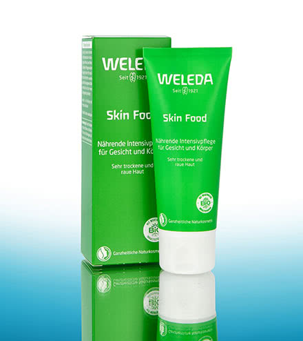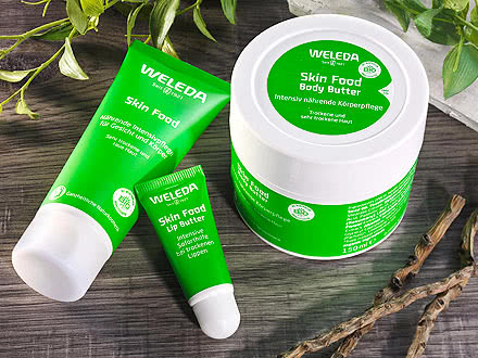To support the skin during regeneration there are countless lotions, oils, fluids and creams today. But sometimes dry skin does not really seem to get satisfied despite creaming. For these cases Weleda has developed the series Skin Food. Its unique composition is based on the calming effect of herbal extracts of pansies, rosemary, chamomile blossoms and calendula flowers. With the Skin Food products, dry to very dry skin as well as heavily stressed body parts e.g. knees and elbows are specifically nourished.