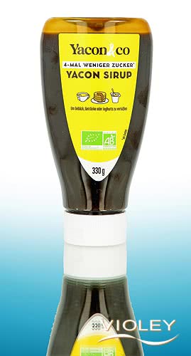 Yacon&co Organic Yacon Syrup in the big 330 g bottle. Yacon syrup is a natural sweetener obtained from the yacon root. With its mild, caramelly-fruity flavour, it is ideal for refining pastries, desserts, yoghurt or drinks.