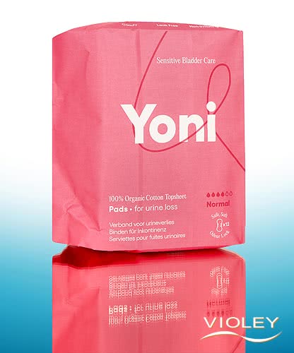 Yoni Pads for Urine Loss Normal. The surface of the pads that comes into direct contact with the skin is made of 100% organic cotton. The absorbent core with super-absorbent material and an additional elasticated band ensure leakage protection in the event of slight urine loss. The comfortable fit ensures long wearing comfort.