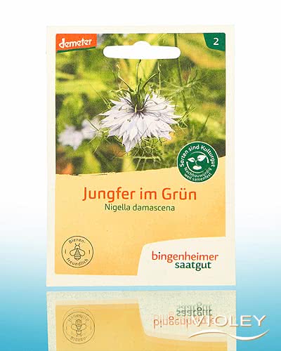 Semillas de Bingenheimer Saatgut de amor ecológico en verde. La doncella en verde es una flor anual de verano con flores azules, y rosas y blancas. No plantea exigencias especiales al suelo. Los caracoles la rechazan.