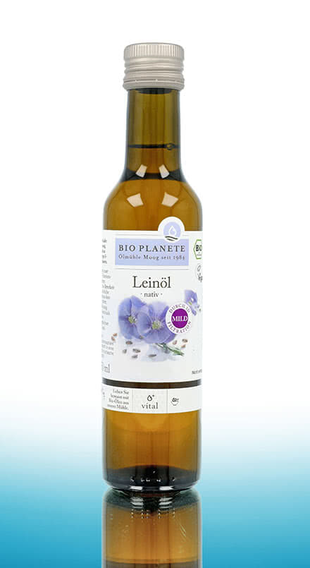 El aceite de linaza tiene un contenido especialmente alto del ácido graso poliinsaturado omega-3 ácido alfa-linolénico. No puede ser producido por el propio organismo, pero es, entre otras cosas, necesario para la construcción de las células. El organismo también necesita ácido alfa-linolénico para producir sustancias antiinflamatorias. En la naturaleza, los ácidos grasos omega-3 se encuentran principalmente en los pescados grasos.Gracias al aceite de linaza, los vegetarianos y veganos también pueden consumir este ácido graso esencial de forma natural. El aceite de linaza puede tomarse puro, pero también refina aliños, mueslis, batidos y platos de verduras. En Bio Planète encontrará aceites vitales ecológicos de gran calidad como el aceite de linaza, las mezclas de aceite de linaza y otros valiosos aceites vegetales.