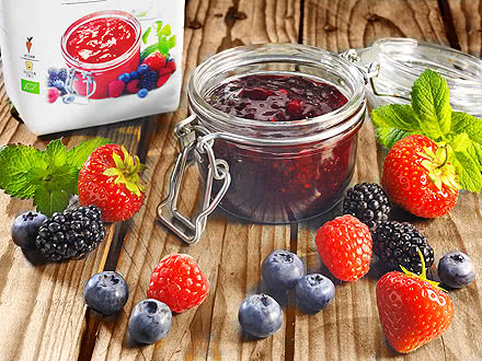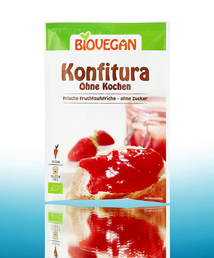 Cuando busque ingredientes ecológicos de origen vegetal para repostería no podrá pasar por alto a BioVegan, ya que ofrece una gama muy amplia de productos para dulces caseros. Con el gelificante ecológico BioVegan Konfitura, las pastas de fruta para untar sin azúcar y con la calidad de los alimentos crudos triunfarán completamente sin necesidad de cocción. De este modo, se conservan los valiosos ingredientes y el sabor natural de las frutas recién recolectadas. Con el Azúcar gelificante bioVegan se pueden preparar rápidamente y sin cocción cremas para untar afrutadas y aterciopeladas. Con el azúcar gelificante bioVegan se pueden preparar pastas para untar de frutas especialmente firmes. Las variantes 2:1 y 3:1 permiten elaborar cremas de fruta para untar a base de dos o tres partes de fruta y una parte de azúcar. La consistencia suave del Glaseado para tartas ecológico BioVegan realza especialmente bien la cobertura de fruta brillante. Está disponible transparente o con un color rojo ideal para una tarta de fresa.