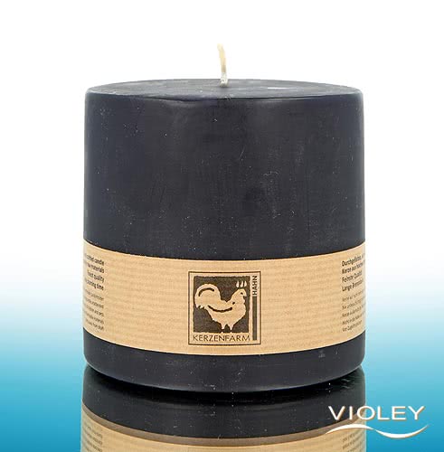 Vela de pilar Kerzenfarm Hahn negra 90 x 100 mm. La impresionante vela de pilar negra proporciona una luz agradable y un ambiente atmosférico. Las ceras de parafina de calidad arden sin dejar residuos. Kerzenfarm Hahn utiliza únicamente mechas seleccionadas de algodón 100%.