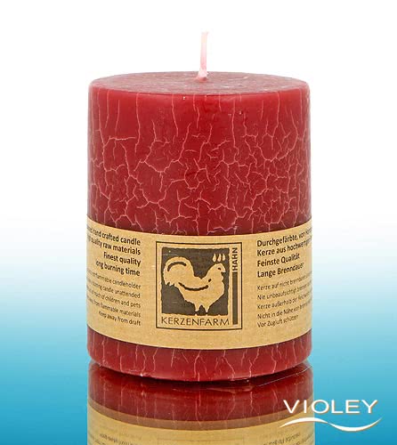 Vela de pilar Kerzenfarm Hahn rojo oscuro Cracklee 75 x 65 mm. La hermosa vela de pilar rojo oscuro con la superficie similar al mármol proporciona una luz agradable y un ambiente atmosférico. Las ceras de parafina de calidad arden sin dejar residuos. Kerzenfarm Hahn utiliza únicamente mechas seleccionadas de algodón 100%.