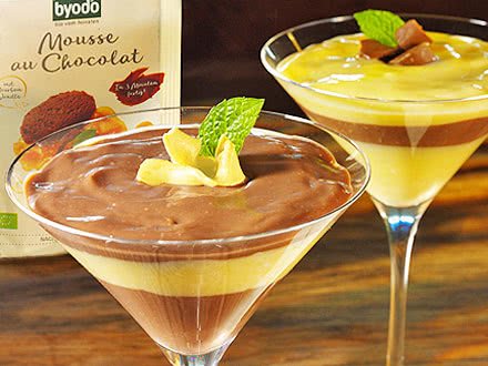 Con el pudin ecológico Byodo, la panna cotta ecológica y la mousse de chocolate ecológica podrá preparar deliciosos postres ecológicos en un abrir y cerrar de ojos. Mientras que el cacao en polvo desaceitado garantiza un intenso disfrute del chocolate en el pudin de chocolate, la auténtica vainilla bourbon confiere al pudin de vainilla su maravilloso aroma. La panna cotta ecológica Byodo deleita el paladar con su equilibrado y fino sabor. Este postre clásico italiano se adorna tradicionalmente con fresas o crema con Aceto Balsamico di Modena. La Mousse de chocolate ecológica Byodo, la Mousse de bayas ecológicas y la Mousse de vainilla ecológica impresionan por su maravillosa ligereza. El fino polvo se bate maravillosamente aireado en pocos pasos y en sólo 3 minutos, puede endulzarse al gusto y garantiza un disfrute inmediato. La Mousse ecológica Byodo puede servirse como postre o como relleno de crema para endulzar tartas y pasteles dulces. Los postres ecológicos Byodo, con los mejores ingredientes ecológicos, garantizan el disfrute de postres maravillosamente cremosos o particularmente aireados.