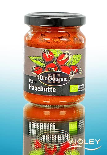 BioGourmet Luomu Pesto Ruusunmarja. Ekstra-neitsytoliiviöljy, kuivatut tomaatit, valkosipuli ja hienot makadamiapähkinät lisätään ruusunmarjojen hienohappoiseen, hedelmäiseen aromiin, joka maustetaan vain pienellä suolalla, chilillä ja pippurilla. Pesto-herkku, jossa on kaikki pulleiden, kiiltävänpunaisten ruusunmarjojen maalaismainen voima. Pesto sopii hyvin pastan, grillatun ruoan tai paahdetun leivän kanssa.