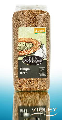 BioGourmet Luomu Speltti Bulgur. Herkullisen pähkinäisen makuinen ja nopeasti valmistettava herkullinen erikoisuus suositellaan sekoitettavaksi, muhennettavaksi tai keittojen täytteeksi. Bulgur on "rikottua viljaa" - vilja hajotetaan ensin huolellisesti lämmön ja veden avulla, sitten höyrytetään ja hienonnetaan karkeaksi myllyssä.
