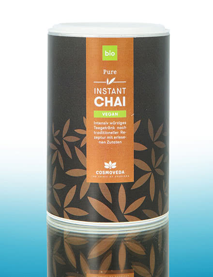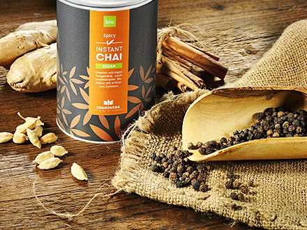 Cosmoveda Instant Chai on saatavilla klassisena versiona maitojauheella sekä vegaanisena versiona riisijuomajauheella. Nauti Instant Chai Vanilla (vegaaninen tai latte): Chain ja Bourbon-vaniljan yhdistelmä on juuri sopiva tunnelmallisiin hetkiin lempituoleissasi. Klassisesta Chaista pitävät saavat rahoilleen vastinetta Instant Chai Pure -juomalla. Instant Chai Latte Spicy on hienostunut tulisella inkiväärillä ja Pippalilla. Hemmottele itseäsi Cosmoveda Instant Chain aromaattis-mausteisella nautinnolla, jossa on itämaista henkeä.
