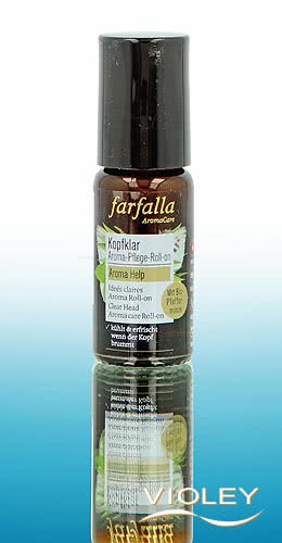 Farfalla Aroma Roll-On Clear Head. Elvyttävä ihonhoito, joka virkistää täsmällisesti. Luotettava koostumus ravitseviin käyttöihin ohimoille ja kaulalle. Kun päässäsi on myrsky ja ensimmäiset myrskypilvet ovat jo kerääntymässä, piparmintun eteerinen öljy pääsee oikeuksiinsa. Raikkaan viilentävän tuoksunsa ansiosta se auttaa kirkastamaan mielen ja selkeyttämään ajatuksia. Kevyt roll-on-hieronta auttaa aktivoimaan mikroverenkiertoa.