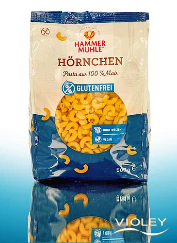 Hammermühle Corn Elbow Pasta. Tämä pasta on valmistettu 100-prosenttisesti maissista, ja sen väri on houkuttelevan keltainen. Nauti keitettyä kyynärpastaa kermaisten pastakastikkeiden kanssa, gluteenittoman pastaleivonnaisen tai kylmän nuudelisalaatin pohjana.