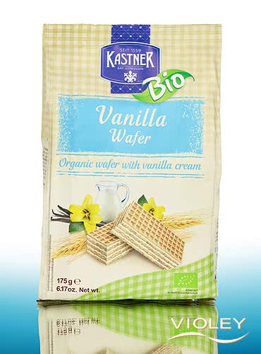 Kastner Luomu Vanilja vohveli. Anna rapeiden vohveliviipaleiden ja pehmeän vaniljakerman hyväksi todetun yhdistelmän houkutella itseäsi. Vaniljan hento makeus harmonisesti yhdistettynä rapeaan puraisuun tekee jokaisesta vohvelista puhtaan nautinnon hetken.