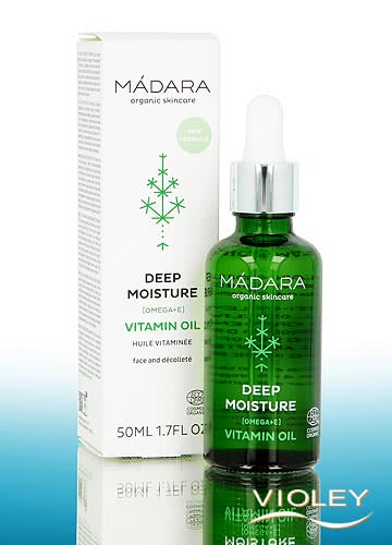 Mádara Omega+E-vitamiiniöljy. Tässä sekoituksessa yhdistyvät iltaimarre-, boorage- ja vadelmansiemenöljy sekä tyrni- ja ruusunmarjauutteet. Nopeasti imeytyvä koostumus sisältää omega-3- ja omega-6-rasvahappoja sekä E-vitamiinia. Tämä kevyt öljy kosteuttaa ihoa ja huokuu sitruksen ja keltaisten hedelmien tuoksua. Herätettyä ihonväriä varten. Öljyä voi käyttää sellaisenaan tai sekoitettuna voiteeseen.