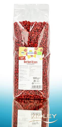 Govinda Baies d'épine-vinette bio en paquet familial de 500 g. Les baies d'orties biologiques naturelles et séchées constituent un enrichissement de la cuisine. Avec leur goût fin, aigre-doux et leur belle couleur, elles conviennent non seulement comme en-cas entre les repas, mais aussi comme ingrédient raffiné pour la cuisine et la pâtisserie.