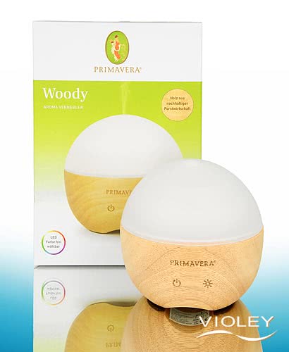 Primavera Diffuseur d'arômes Woody. Le design naturel dans une forme élégante et biologique et les matériaux de haute qualité tels que le verre dépoli et le bois d'hévéa font du nébuliseur d'arômes un enrichissement pour tout environnement de vie! Avec ses quatre modes de fonctionnement et ses huit modes d'éclairage, le nébuliseur offre suffisamment de variété et de possibilités pour créer exactement l'ambiance que vous souhaitez dans votre pièce.