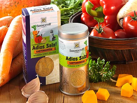 Cependant, l'organisme n'est pas préparé aux énormes quantités de sel que de nombreuses personnes consomment aujourd'hui quotidiennement. C'est pourquoi l'Organisation mondiale de la santé (OMS) met expressément en garde contre un apport en sel trop élevé. Le meilleur moyen d'éviter cela est simple: Cuisinez vous-même. Vous pouvez ainsi décider de ce qui est ajouté aux plats. Et combien d'instinct sûr un cuisinier a-t-il toujours lorsqu'il s'agit de la fameuse pincée de sel. Pour tous ceux qui souhaitent réduire leur consommation de sel, il existe des alternatives intéressantes: Les herbes par exemple. Avec les trois mélanges d'herbes Sonnentor Adios Salt de Sonnentor, vos plats obtiennent le bon goût épicé. Et tout cela sans sel!