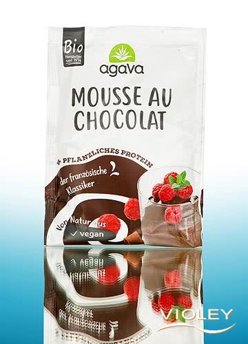 Mousse al cioccolato biologica Agava. Polvere per dessert con cacao per la preparazione di mousse al cioccolato. Un sogno al cioccolato che diventa realtà, con proteine extra. Veloce da preparare e di sicuro successo: mescoli, mescoli e goda.