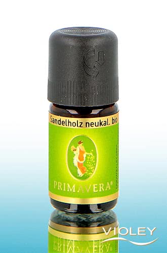 Primavera Sandalo Nuova Caledonia biologico. L'olio essenziale è ottenuto dalla distillazione a vapore e ha un profumo legnoso-fresco, caldo e balsamico. Con la sua straordinaria e intensa fragranza, ha un effetto equilibrante e rilassante. L'olio può essere diluito e miscelato con altri ingredienti come latte da bagno, olio da barba o da massaggio.