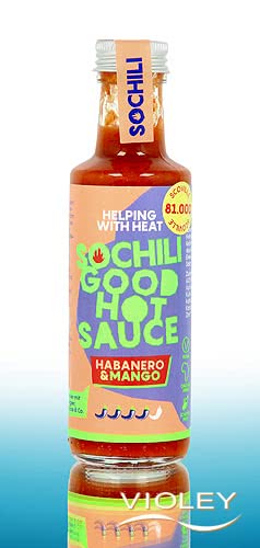 Salsa piccante Sochili Good Habanero & Mango biologica. Questa salsa al peperoncino habanero e mango è (molto) piccante, oltre che fruttata e speziata. Con una miscela di peperoncino, mango e varie spezie del curry, sperimenterà un aroma fruttato e piccante e una sensazione di gusto che non dovrebbe perdere se ama la piccantezza. Ma faccia attenzione al momento dell'assaggio: I peperoncini habanero rendono questa salsa davvero piccante! Meravigliosa per tutti coloro che amano il sapore infuocato.