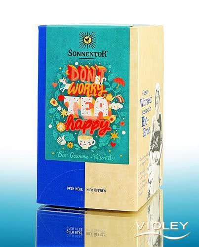 Sonnentor Don't Worry, Tea Happy, bustine per infusione. Pensieri nuvolosi? Non entrano nella tazza! Questo tè è un accompagnamento meraviglioso per canticchiare felicemente e saltellare dentro di sé. Lo assapori per rallegrarsi.
