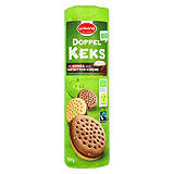 Biscotto sulla parte superiore, wafer sulla parte inferiore, con ripieno di crema al cacao