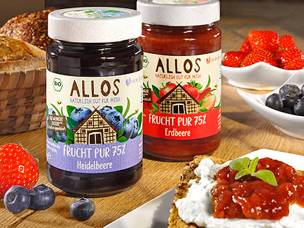 Toen koningin Victoria in de 19e eeuw zelf sinaasappelmarmelade ontdekte, veroorzaakte dat een ware marmeladehausse. Tot op de dag van vandaag staat er in bijna elk Brits keukenkastje wel een potje sinaasappelmarmelade. Het woord marmelade komt trouwens van het Portugese woord voor kweepeer: "marmelo". In het tijdperk van duidelijk gereguleerde terminologie mag tegenwoordig echter alleen broodbeleg van citrusvruchten als marmelade worden verkocht. Alle andere zijn jam, gelei of gewoon vruchtenspread. Veel fruitspreads bevatten tegenwoordig echter meer suiker dan fruit. De biologische fruitspreads Frucht Pur 75% van Allos doen hun naam echter eer aan. Want 75% van de inhoud bestaat uit heerlijk fruit van biologische boeren. Om het waardevolle fruit zo voorzichtig mogelijk te behandelen, gebruikt Allos een kort kookproces.