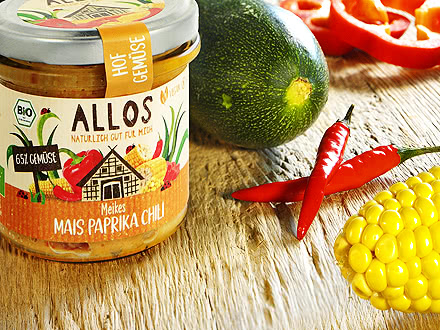 Omdat een grote hoeveelheid biologische groenten heerlijk smaakt, hebben de biologische Spreads van Allos Hof-Gemüse een groentegehalte tot 70%. Eet smakelijk.