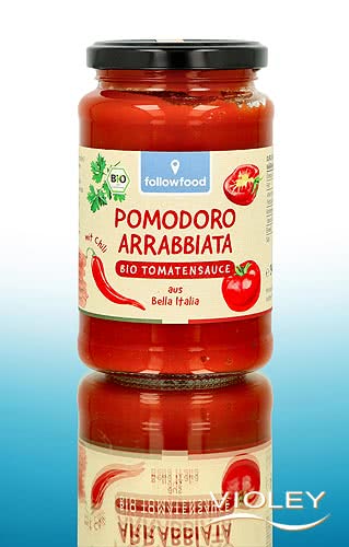 followfood Pomodoro Arrabbiata. Deze heerlijke biologische tomatensaus heeft een fruitige en toch licht pittige smaak. Hij wordt bereid volgens een traditioneel recept in het mooie Noord-Italië. De tomaten komen ook uit de regio en zijn bijzonder zoet en smaakvol dankzij de heuvelachtige landbouw en de nabijheid van de zee. Een vleugje Spaanse peper voegt ook dat beetje extra toe. Voor een heerlijke smaak op uw pastabord.