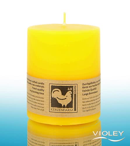 Kerzenfarm Hahn Staalkaars Geel 75 x 65 mm. De mooie gele pilaarkaars zorgt voor aangenaam licht en een sfeervolle ambiance. De kwaliteitsparaffine brandt zonder resten. Kerzenfarm Hahn gebruikt alleen geselecteerde lonten van 100% katoen.
