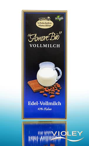 Liebhart's Amore Bio Biologische Fijne Melkchocolade 43% met 43% cacao. Voor onvergetelijke momenten van genot.